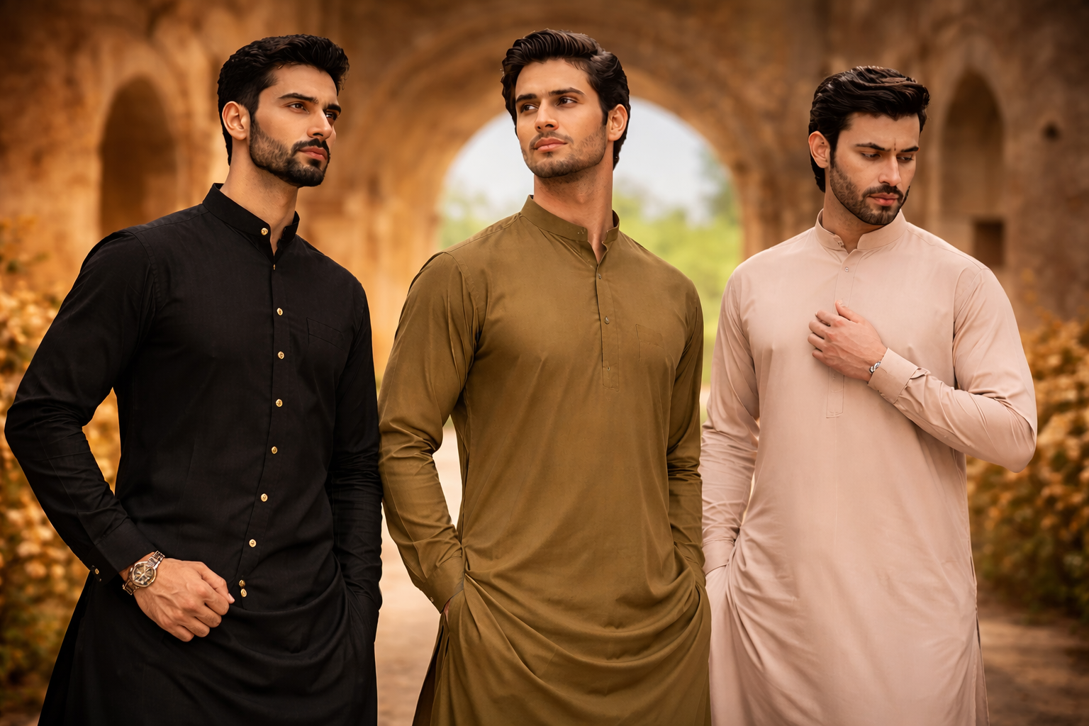 Eid is a special occasion when men across Pakistan love to dress in their finest traditional outfits. From classic embroidered kurtas to elegant shalwar kameez and stylish waistcoat combinations Eid fashion for men in Pakistan continues to evolve every year, combining traditional styles with modern elegance.