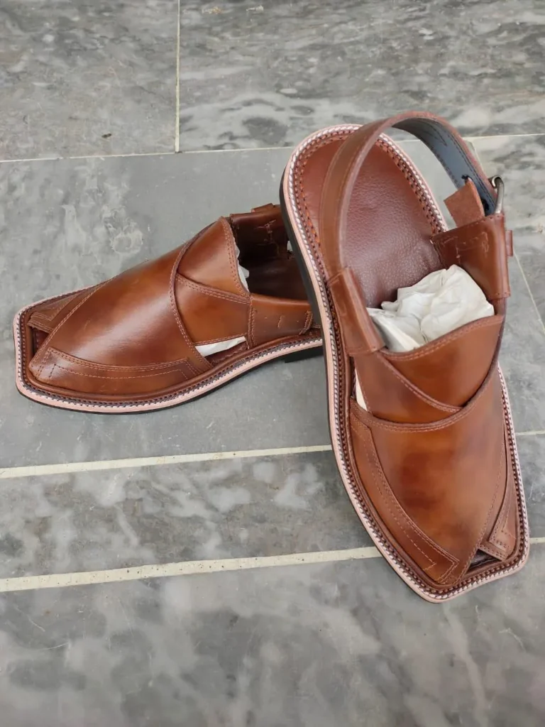 Men’s Brown PU Leather Peshawari Chappal – Stylish Traditional Footwear