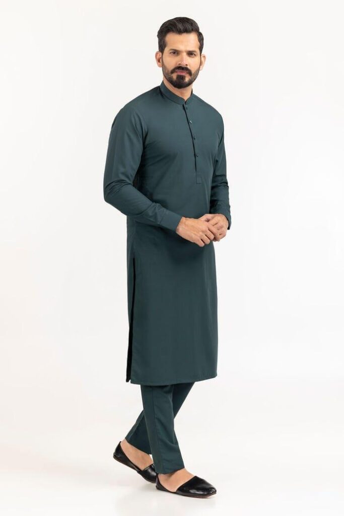 Premium Green Wash & Wear Unstitched Suit for Men Upgrade your winter wardrobe with…