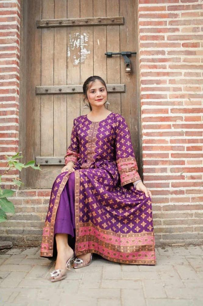 VIEW NOWElegant Purple Katan Silk Embroidered Maxi – Stylish 2 Piece Women Outfit